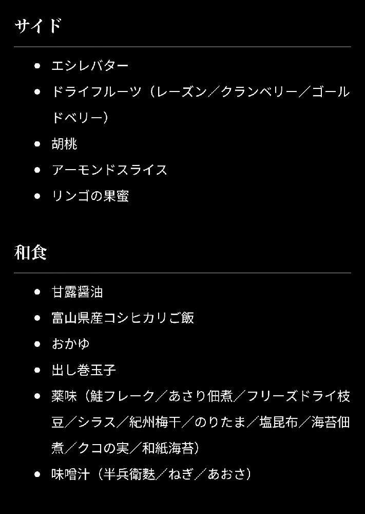 エグゼクティブハウス禅のラウンジ朝食メニュー