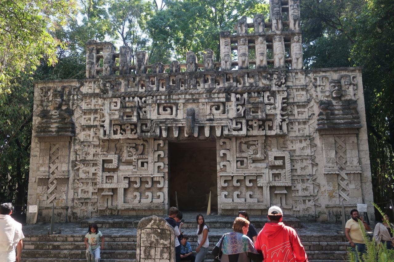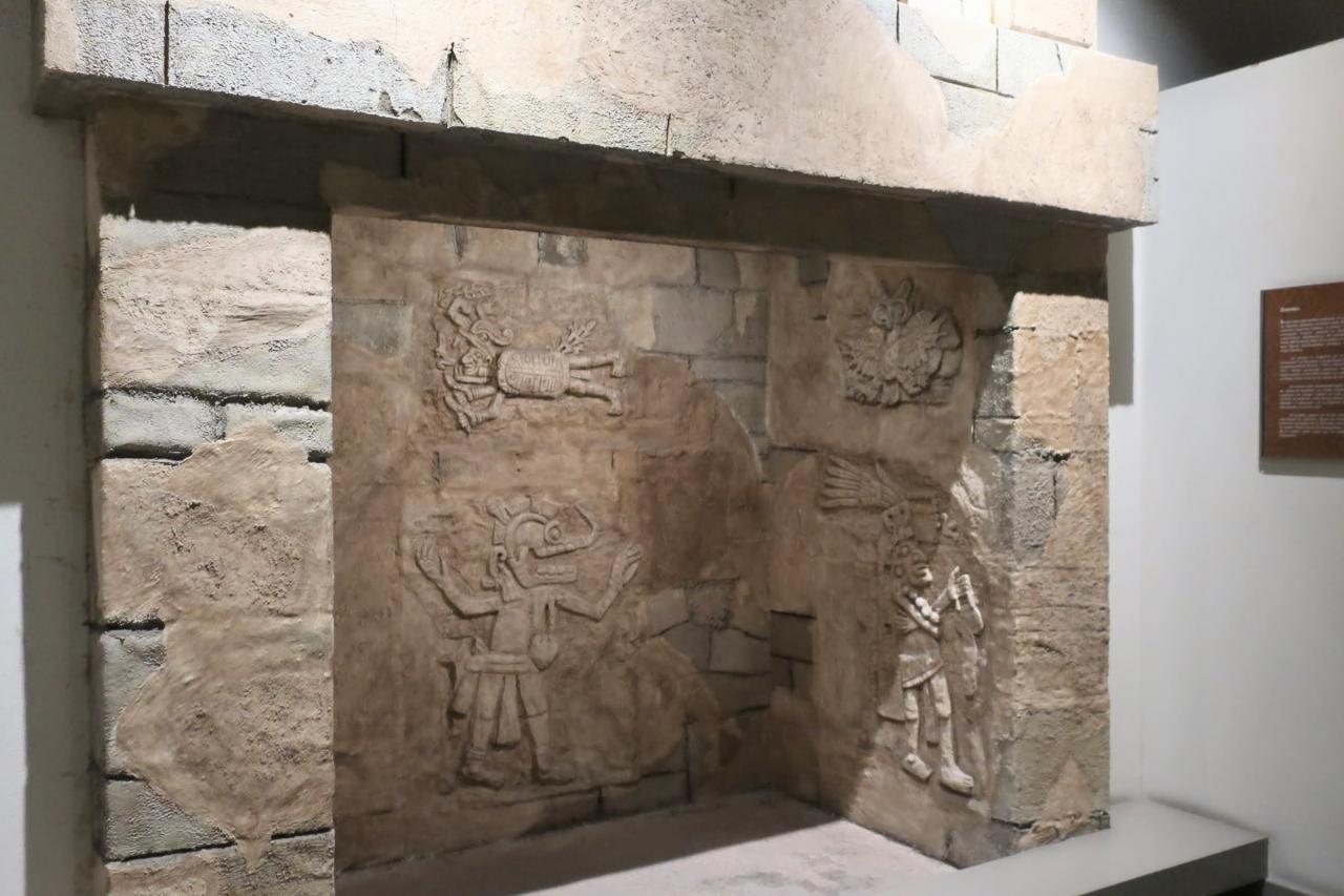 こちらはエル・タヒン遺跡の球戯場の壁を再現したもの。行かずとも見られるのがありがたいですね。