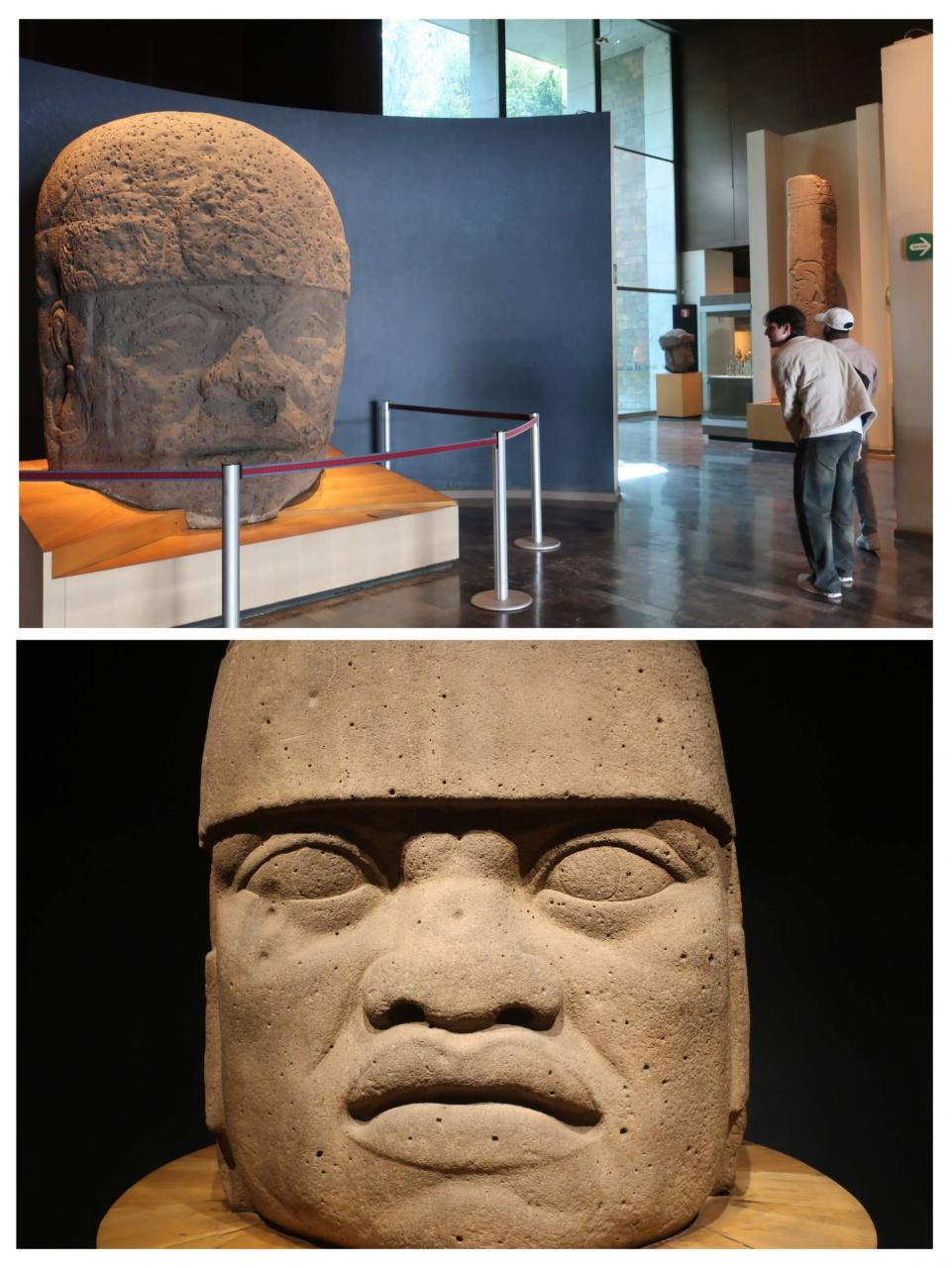 そしてオルメカ文明といえば、これ! 巨石人頭像です。重量感がハンパなく、大迫力です。到底、少人数で動かせるようなものでないことから、この時代からもう組織的な労働力を駆使できていたことや指揮系統があったことなどが分かります。