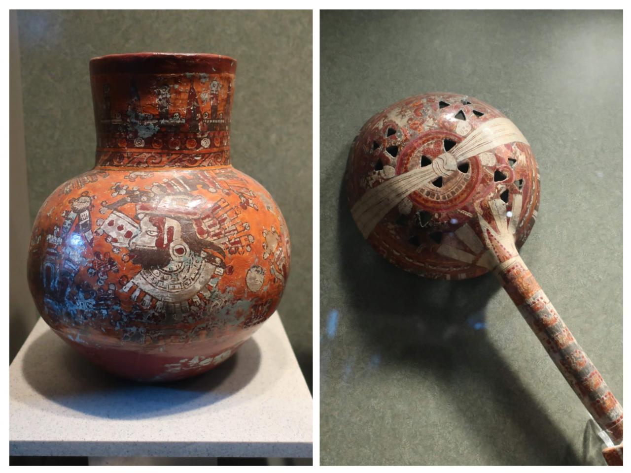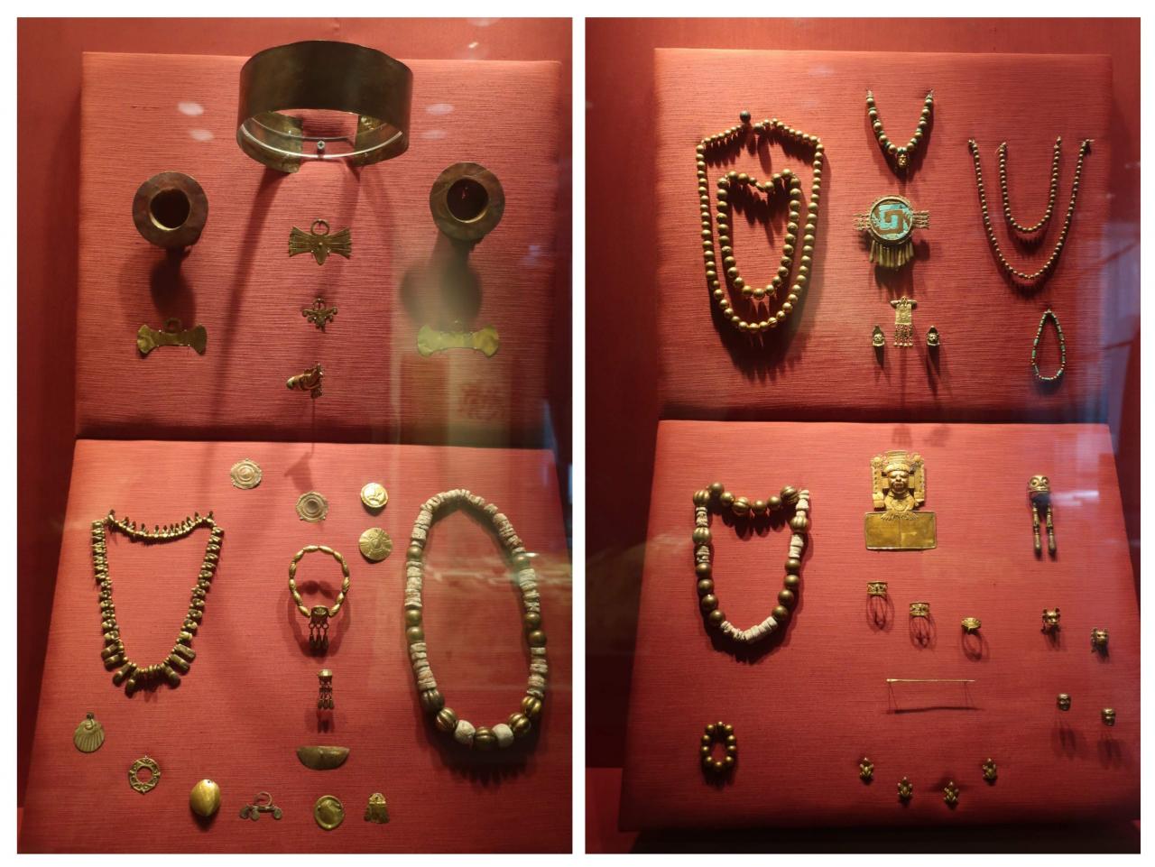 こちらはチチェンイツァ遺跡の聖なるセノーテから出てきた奉納品のようです。金製品などが多く、一目で高価な品だと分かります。それだけ雨を乞う気持ちが切実だったのですね。