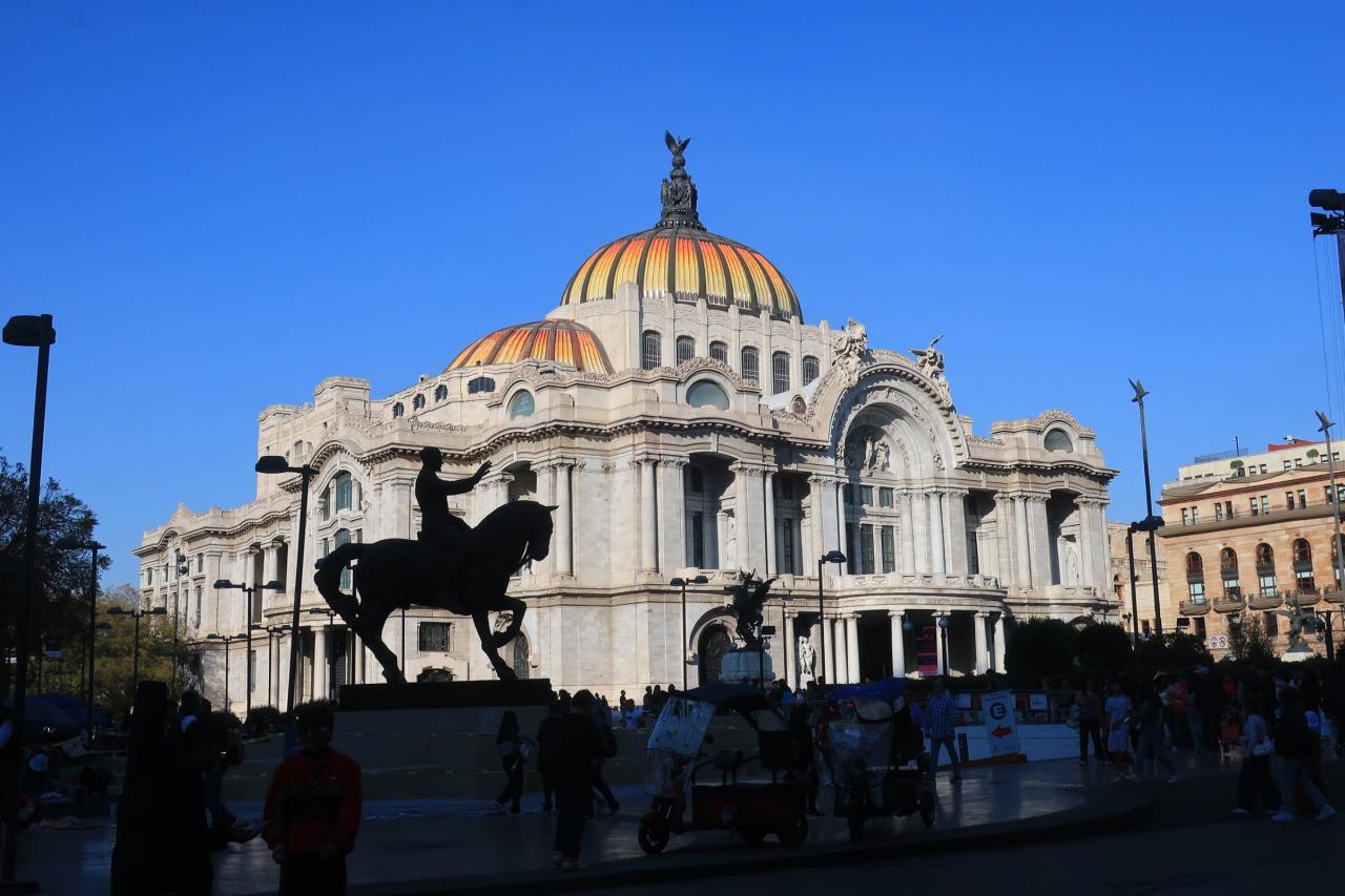 ベジャスアルテス宮殿は、1934年に国立劇場として建設されました。現在は、劇場としても使用されていますが、近代美術館も併設しています。美術館の入館料は95MXN(855円)です。ベジャス アルテス宮殿 建造物