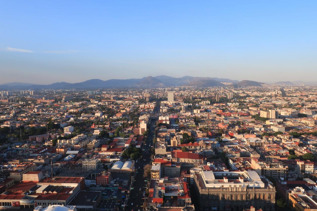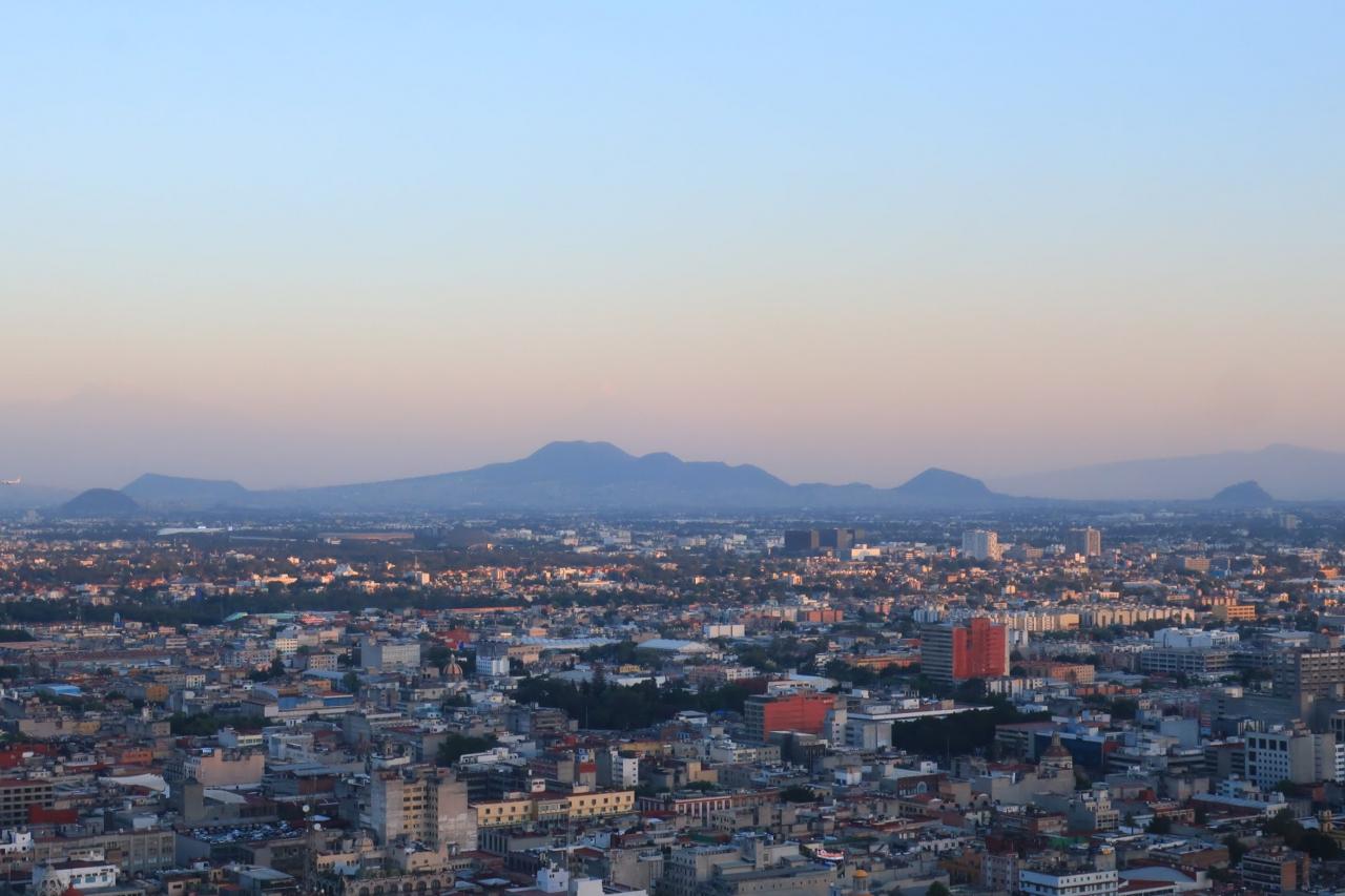 こうして四方向を眺めると、メキシコシティは周囲を山々に囲まれているのですね。 -