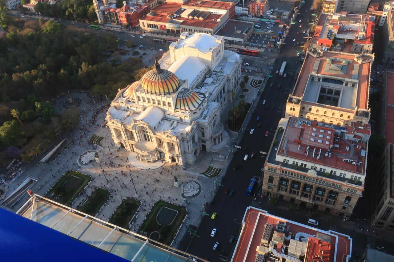 ラテンアメリカタワーを出て、下から見るベジャスアルテス宮殿。