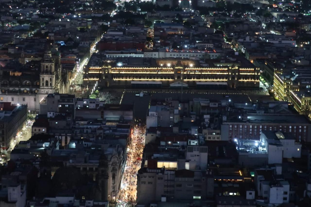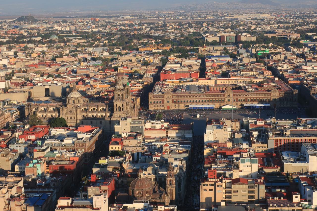 アップで。歴史地区のソカロと隣接するメトロポリタン大聖堂や国立宮殿が見えます。