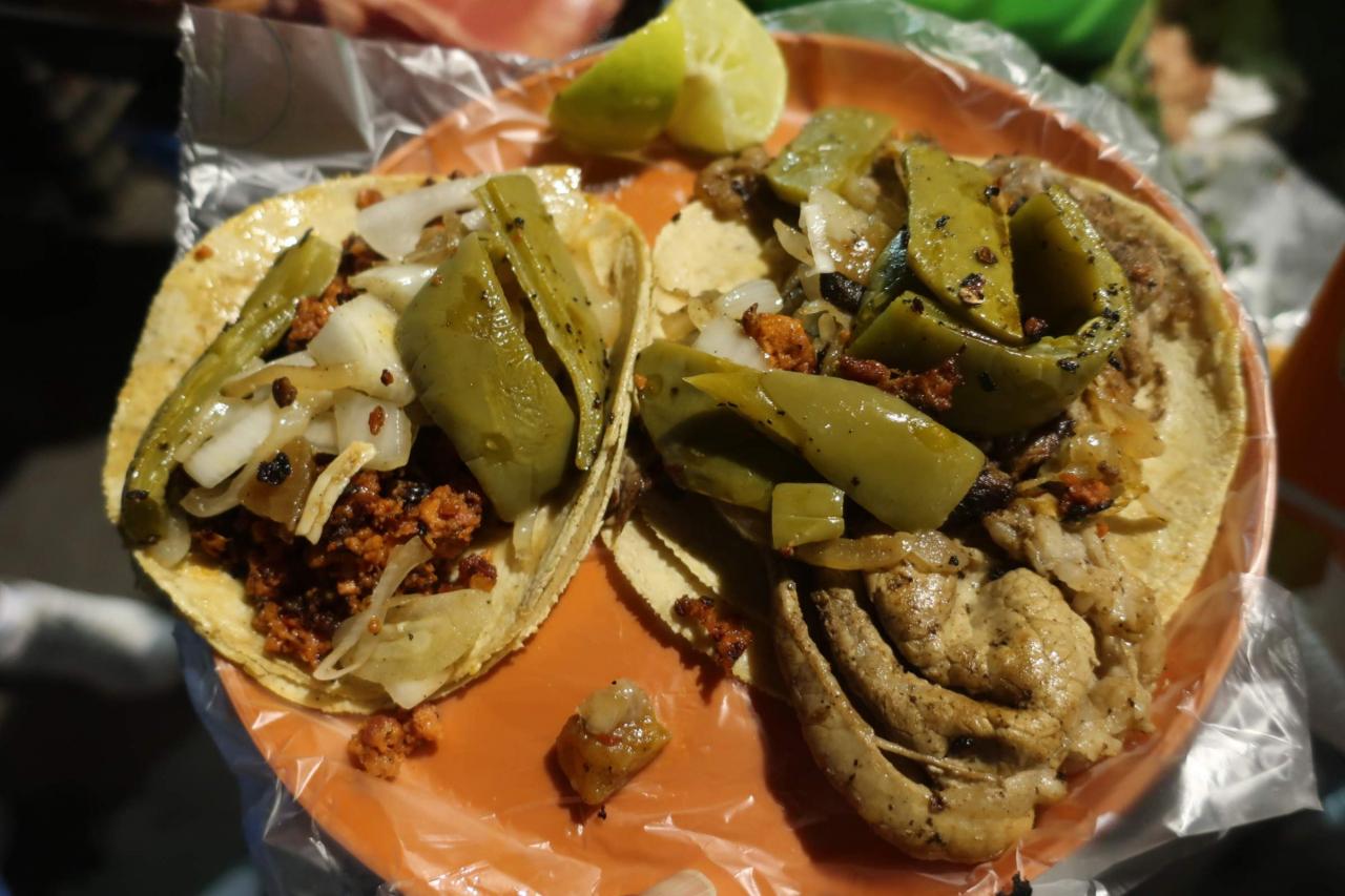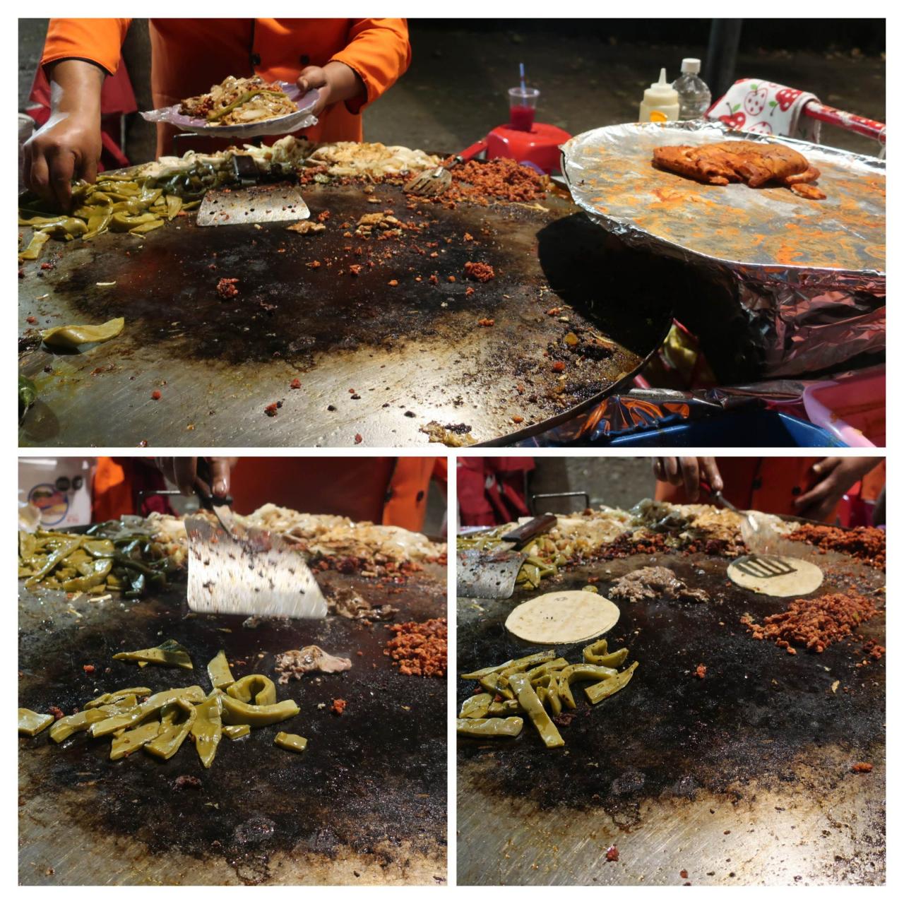 こちらの屋台ではお肉が何種類かあって、好きなものを選べるようです。私は ロンガニサ(メキシコ風のソーセージ)とビステク(牛の薄切り肉) のタコスを一つずつ頼みました。2個で60MXN(540円)でした。セボジャ(玉ねぎ)とノパリス(サボテン)はどうするかと聞かれたので、もちろん2つともお願いします。(今日は全然野菜食べてないし)アラメダ公園 広場・公園