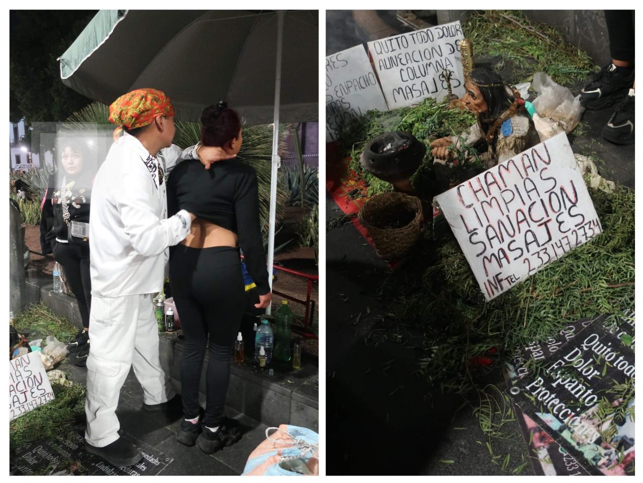 たくさん出ている屋台の中には、何やら怪しげな屋台も…。香草みたいなもの(右)を焚いて、煙を身にまとわせたり、香草の束を身体にこすりつけたり…。日本人から見たら、立派なセクハラです…(汗)