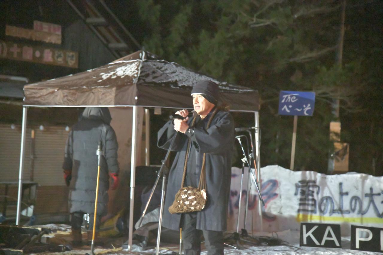 長野市戸隠神社、中社広場で“The べ~そ”。毎年戸隠恒例!雪の上の大酒宴!。“べ~そ”は戸隠方言で“調子に乗って大騒ぎする”。700円の「べ~そカップ」を購入して、温かい大鍋や日本酒、ワインが呑み食べ放題。ゴロピカのファイアーパフォーマンスや、長野市無形重要文化財に指定されている「宣澄踊り」を皆と一緒に踊った。今年は雪が少ないが、冬の戸隠の凍てつくような夜に、松明を囲んで最高に盛り上がった。