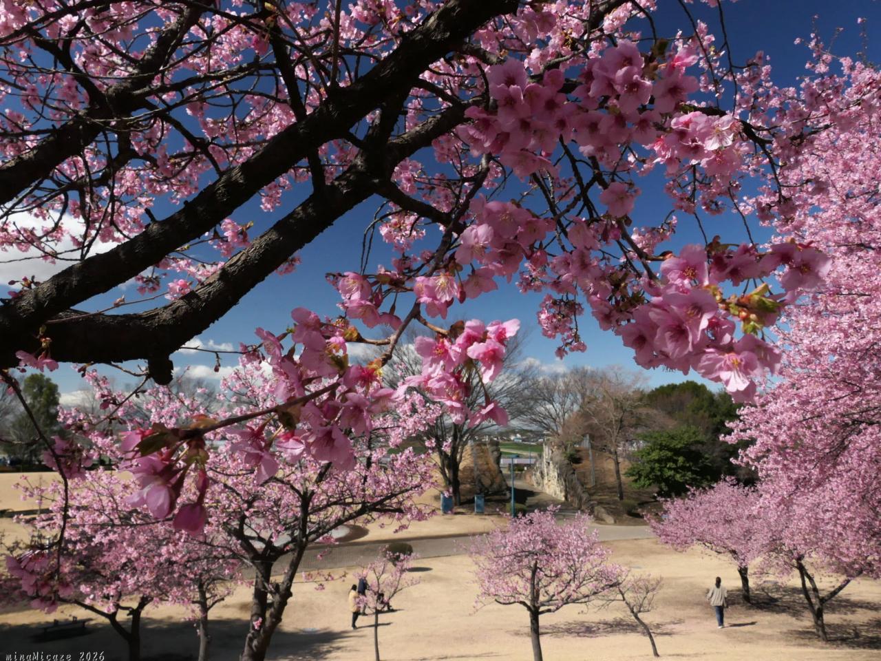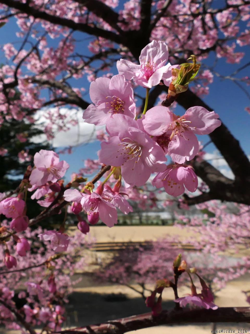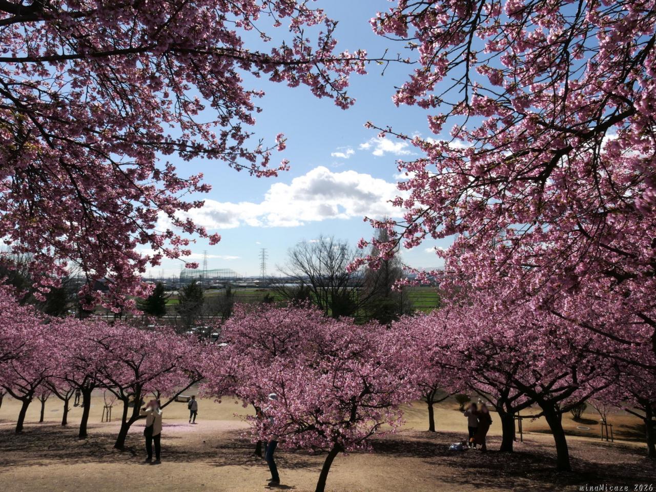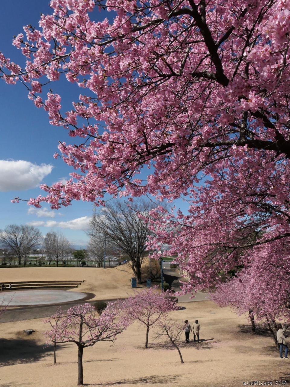 群馬県伊勢崎市の「伊勢崎市みらい公園」へ、河津桜を見に行きました。前回(2月18日)ウメを見に行ったときには、河津桜は数輪咲いてただけでしたが、この2週間で満開になりました。