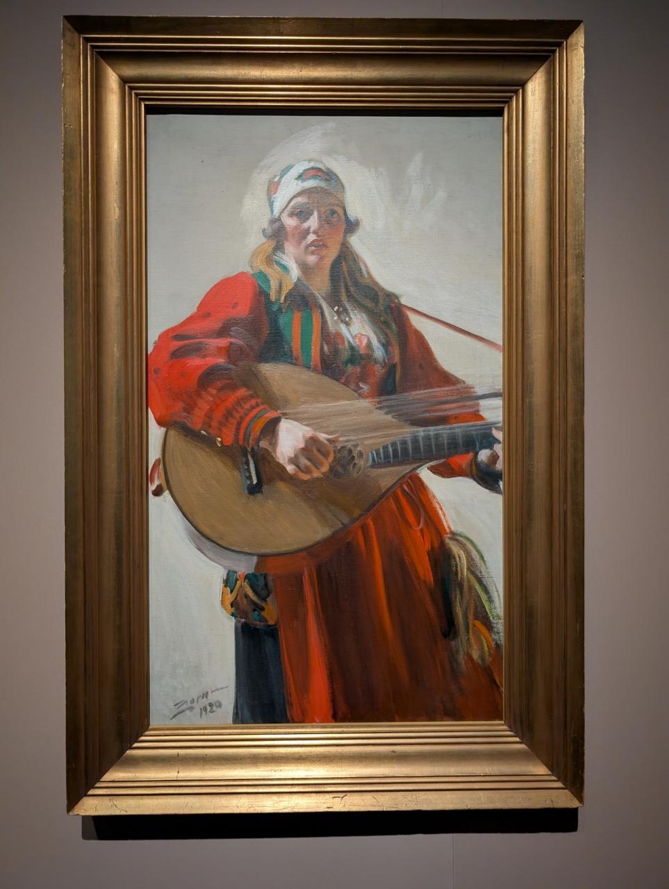 アンデシュ・ソーンの最晩年の作で、伝統衣装をまといリュートを奏でる女性が描かれています。