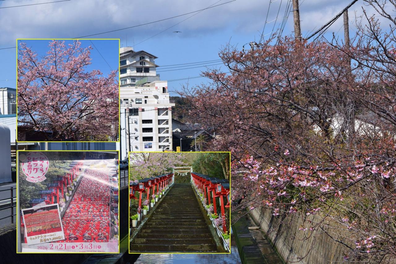 天気も良いため気分よくドライブして勝浦に入りました。勝浦では雛祭りのイベントが近づいており会場となる遠見岬神社の様子を見てきました。漁港付近から徒歩で神社まで往復しましたが河津桜も咲き遠見岬神社の階段も雛飾りが並ぶ準備が進んでいる様子でした。ちなみに雛祭りの期間は2月21日から3月3日でした。