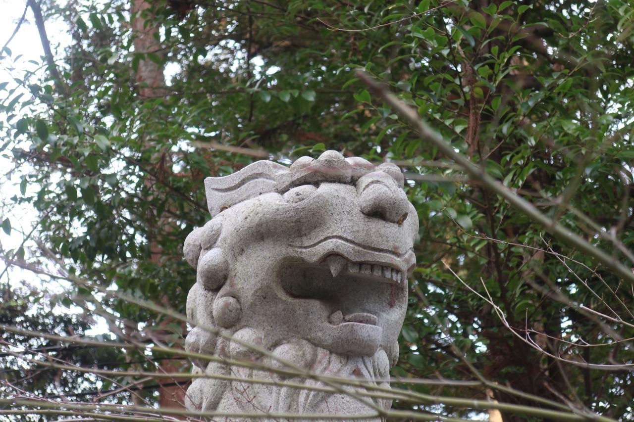 ユニークな顔つきの狛犬。