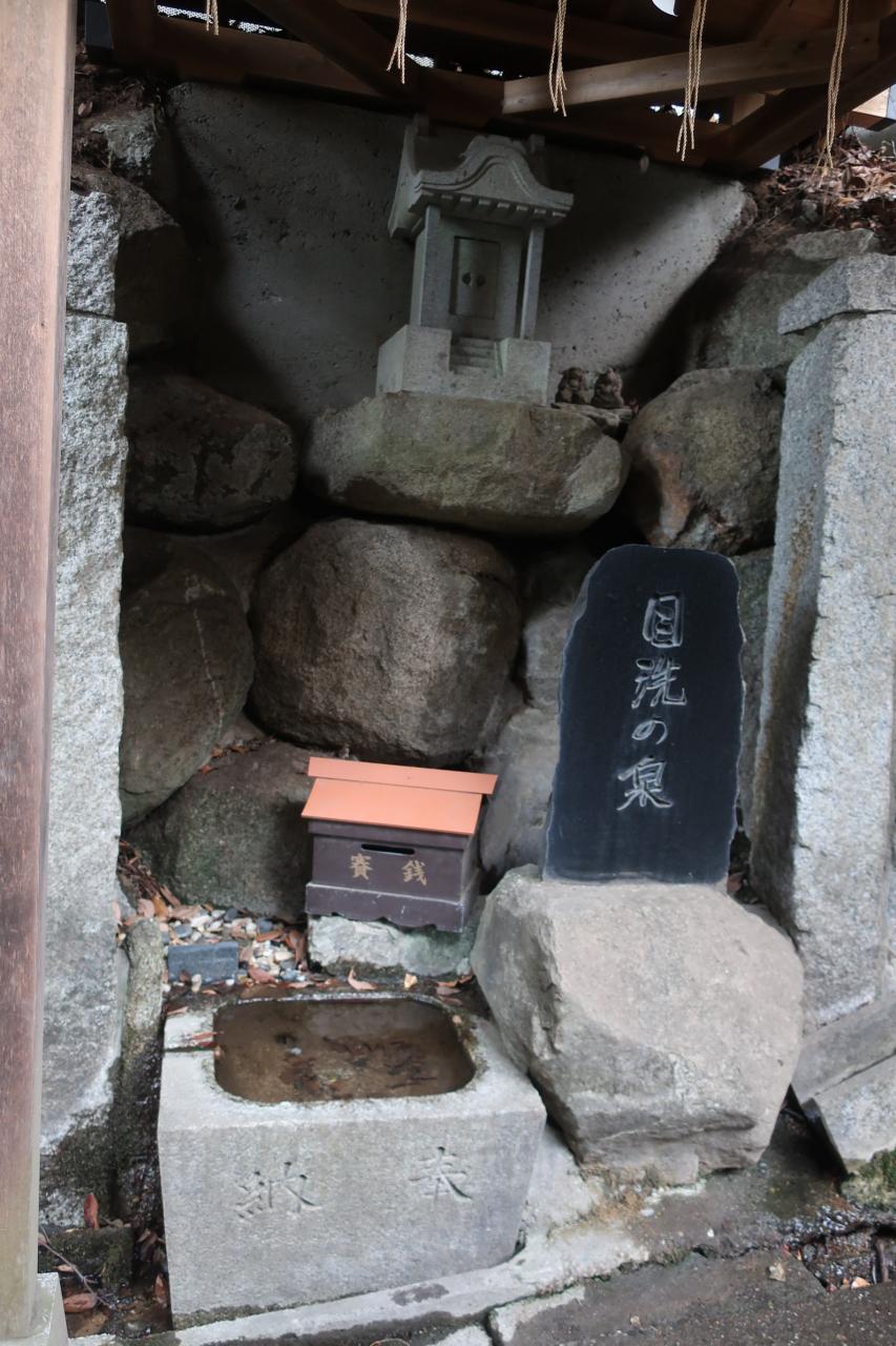 拝殿脇の道を進むと目洗の泉というのがありましたが、水は汚かったです。