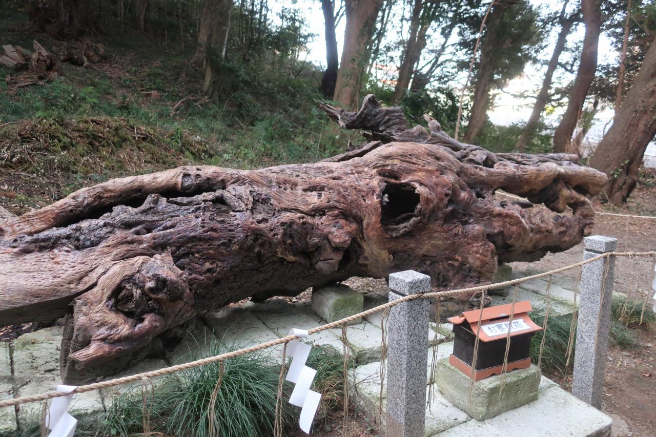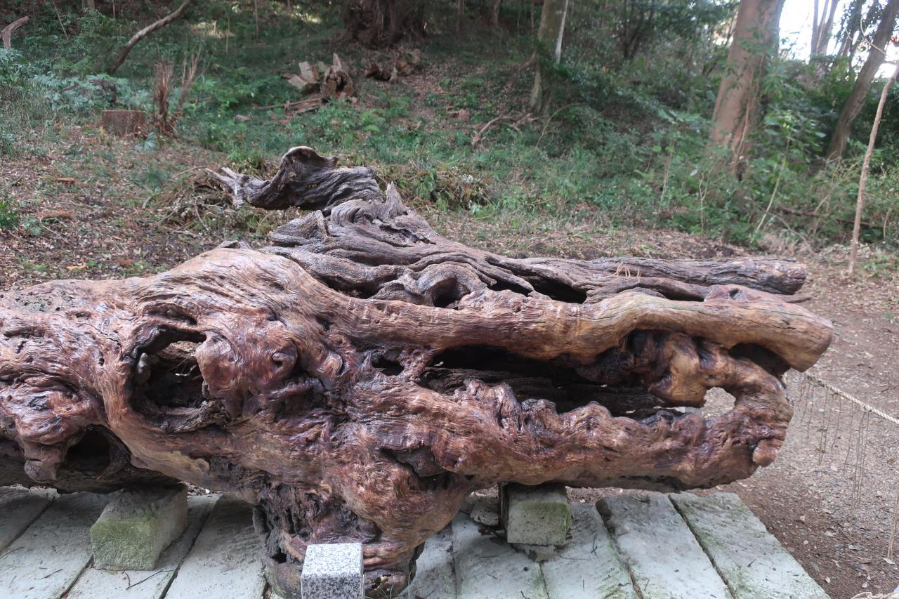 境内奥地より発掘され、姿が龍に見えることから「泉龍木」と名付けられた木が置いてありました。 -