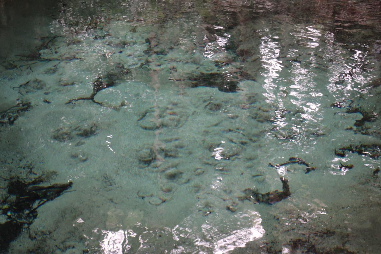 透明な泉の底から盛んに湧水が湧きだしています。