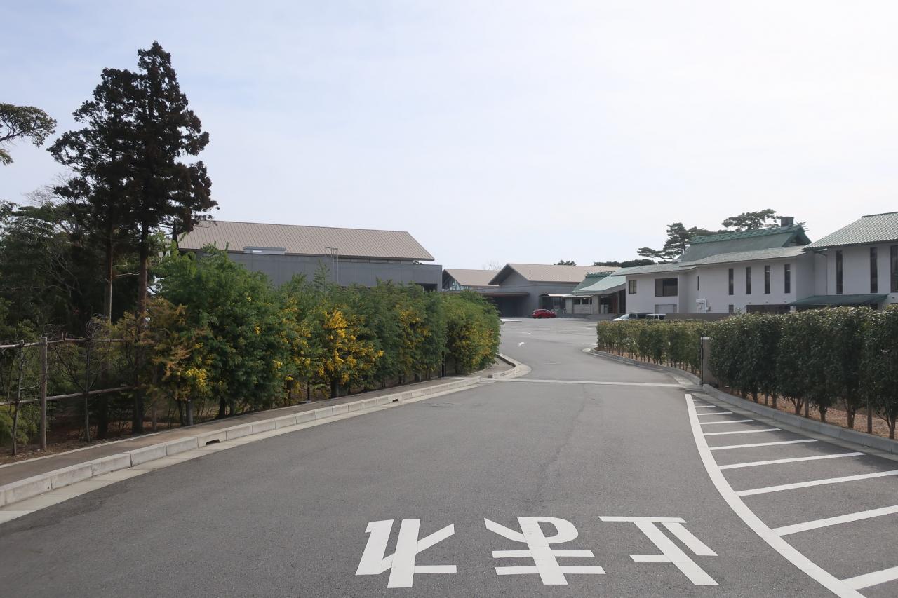 食後はバスで水戸観光に出かけます。まずは茨城県立歴史館にやってきました。ここは旧茨城県立水戸農業高等学校の敷地跡で、広大な敷地が公園になっています。