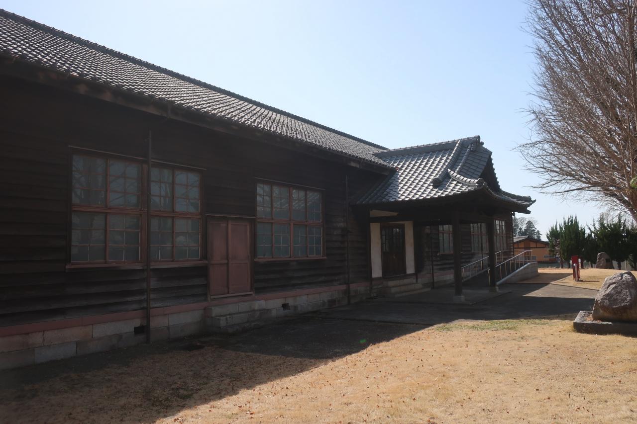 敷地内に建つ旧水海道小学校本館が見学できます。木造2階建ての塔屋付擬洋風建築です。