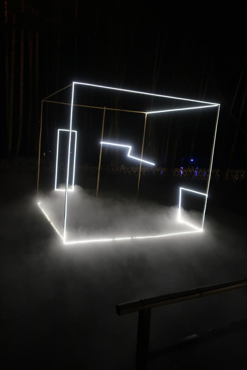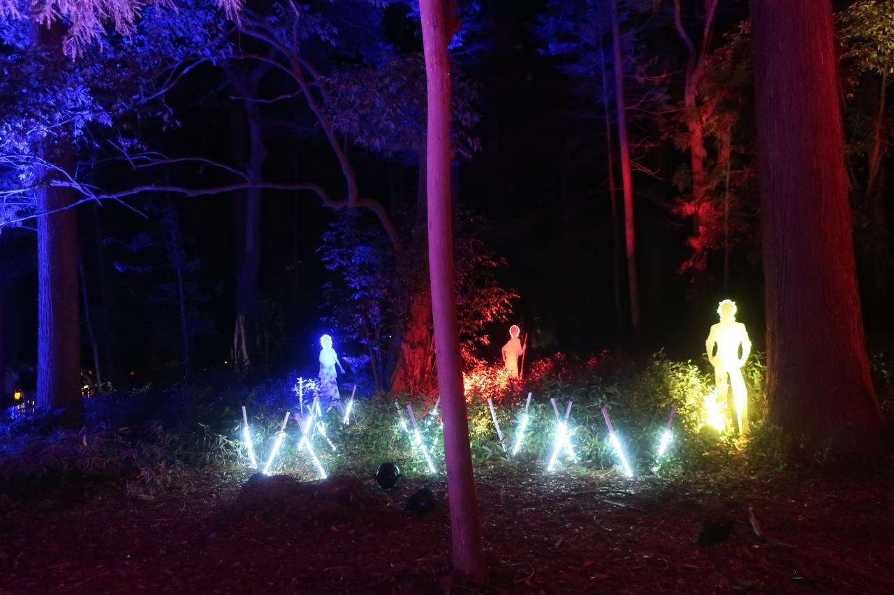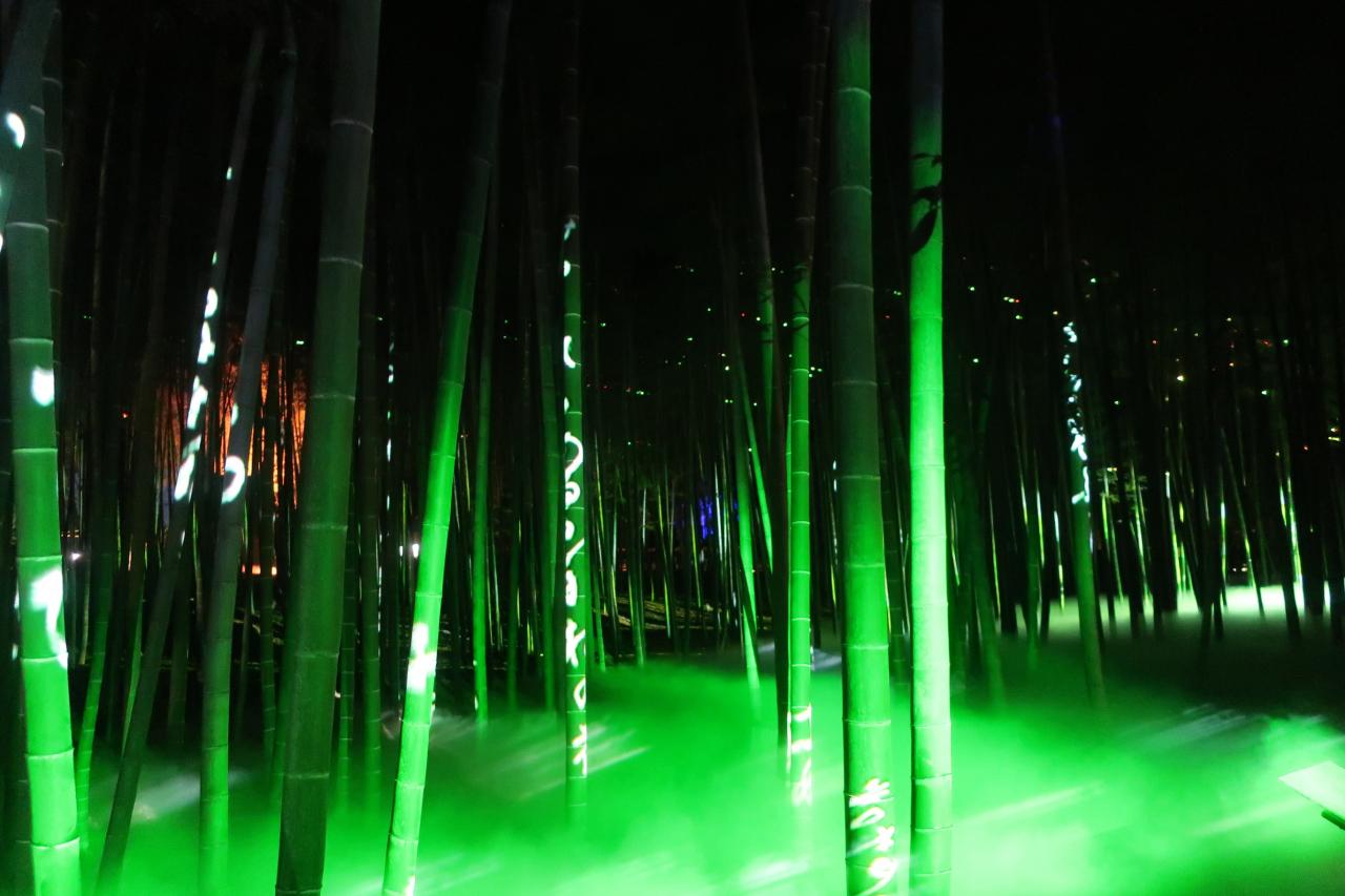 竹藪にスモークとライトの演出