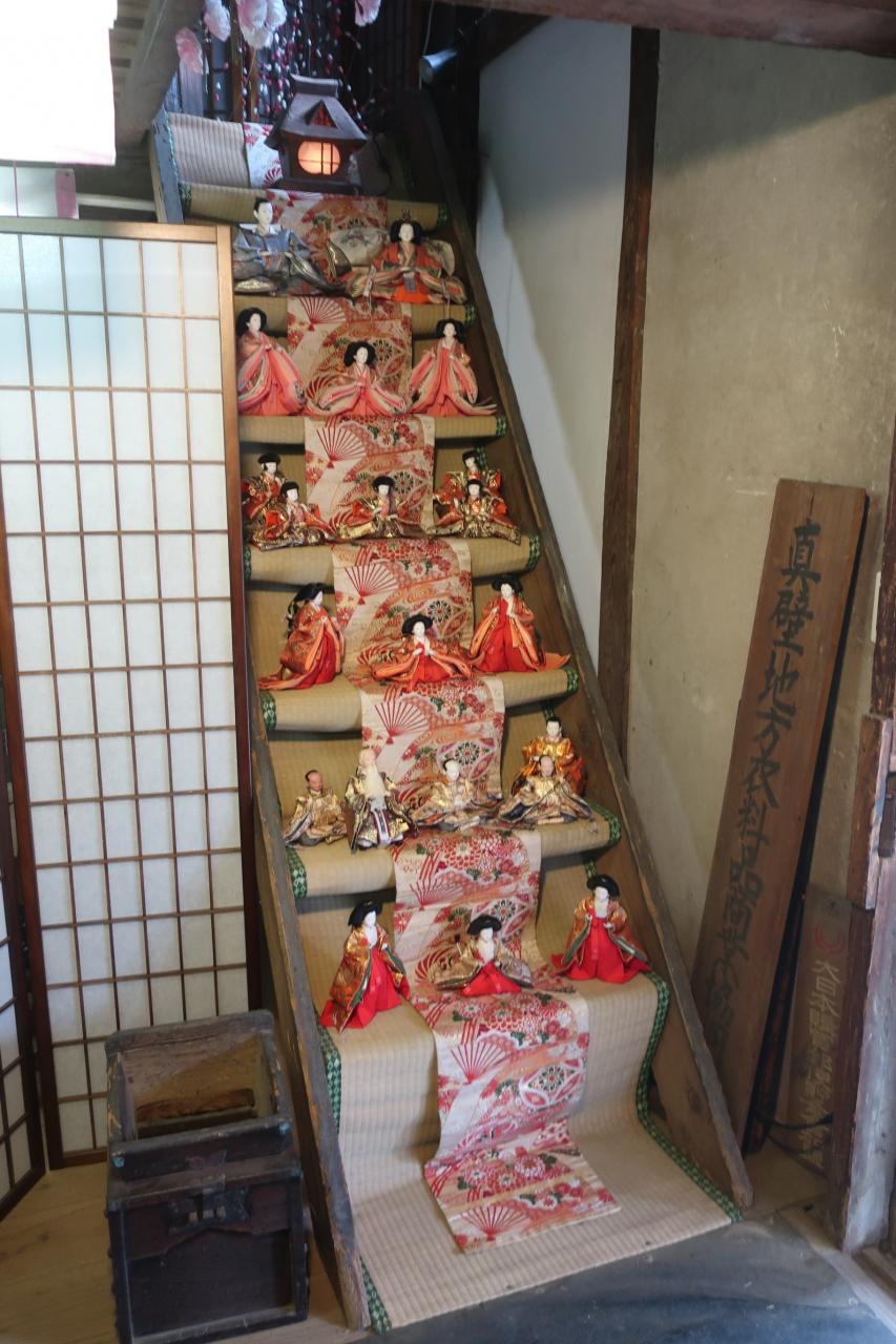 ちょうどひなまつりのイベントの最中で、重伝建エリアでたくさんの雛人形が展示されています。NHKの番組でも紹介されていたせいか、予想以上に観光客が多かったです。