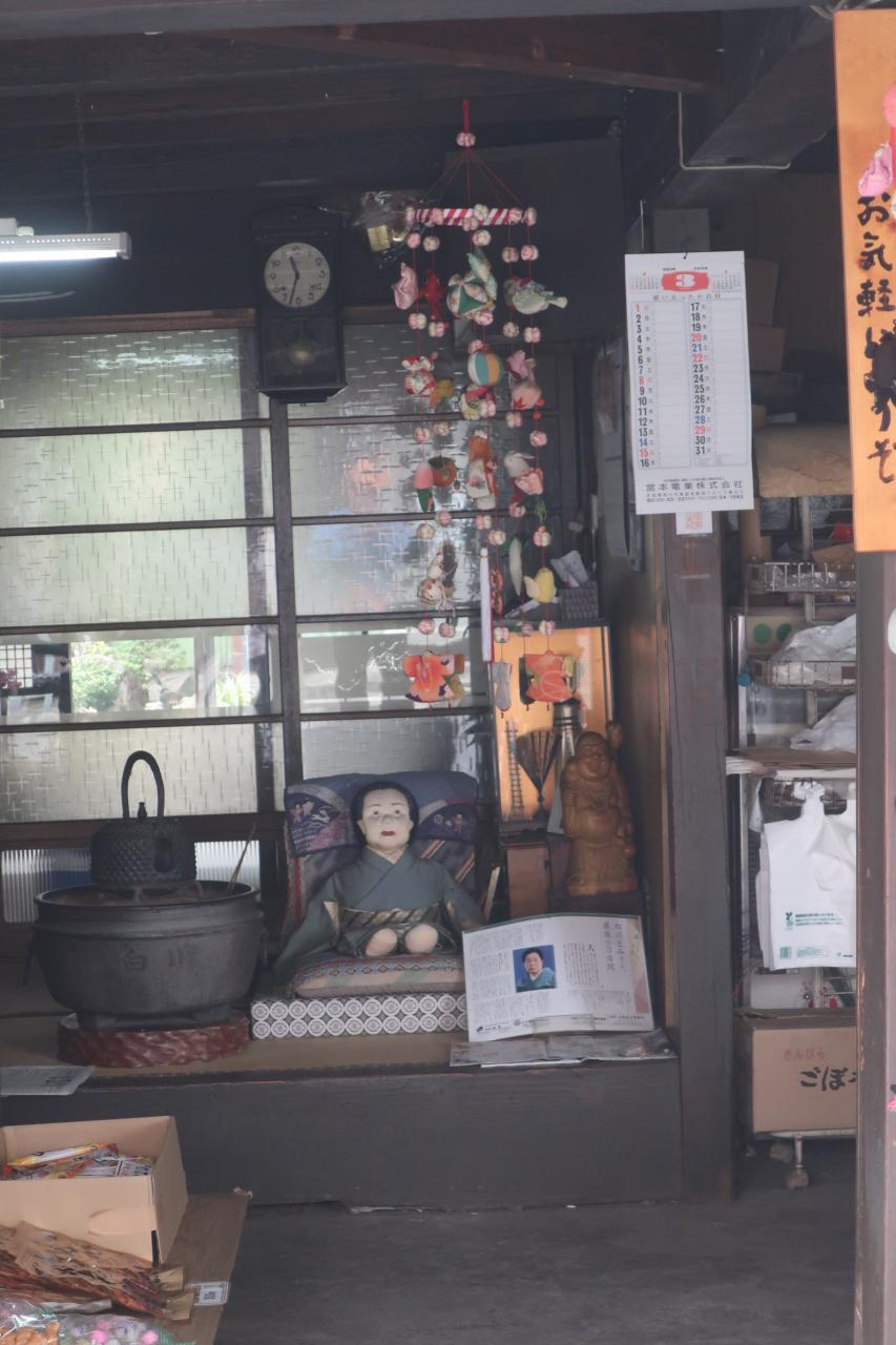 店奥に人形が座っています。これも雛人形でしょうか。AI検索してみると、こちらは白川菓子店先代の白川とみさんという方らしい。真壁のひなまつり期間中、道行く人にお茶を振る舞うなど親しまれていたとのこと。