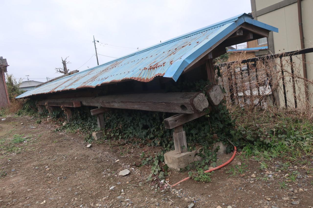 何か柱のようなものを保管しています。祭りの時などに櫓を組むのかもしれません。