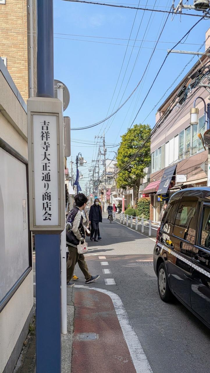 吉祥寺大正通り商店会、歩道が狭い割に意外と車通りのある通りです。