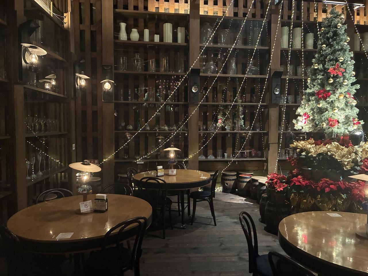 お店がオープンし、中に戻ってきました。12月ということもあり、店内はクリスマスムードな感じです。