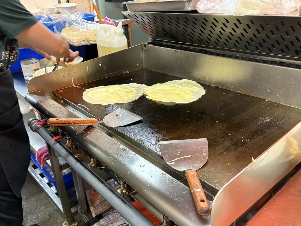 注文した蛋餅、焼いてくれています