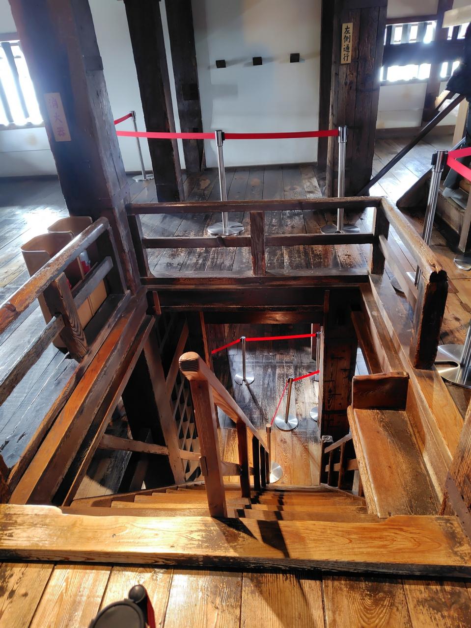 4階に上がる階段には、横に別の上がり口(降り口?)が設けられており、藩主に従う小姓用と考えられています。また、藩主が登城する際は、附櫓の入口から5階までの通路と、5階全面、4階にある箱便所までの通路に畳が敷かれていたんだとか!レッドカーペットみたいなもの?