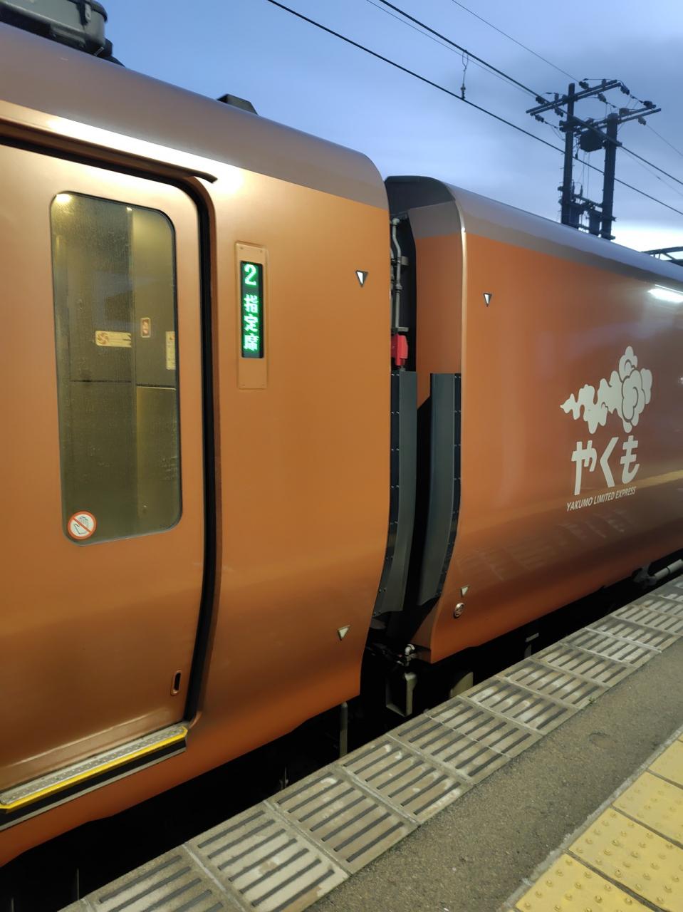 特急やくもの車両は2024年に40年ぶりにリニューアルされました。そのため座席は新しくてきれいでした。乗り物酔い評価指数も最大23%改善されているそうですが、私は初めて乗るので、リニューアルの効果は分かりません。前の車両はむっちゃ揺れていたんでしょうか?
