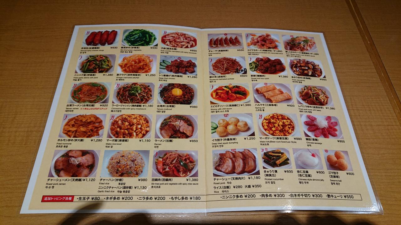 おなじみのメニューの数々。