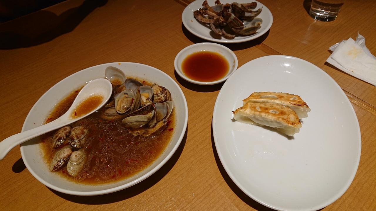 写真を撮るの忘れて食い散らかした後ですが、「あさり炒め」と「餃子」も絶品。他にも「にんにく炒飯」や「手羽先」など、モリモリいただきました。