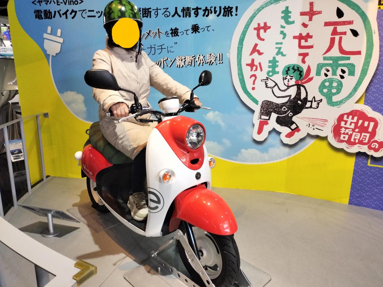 私が唯一わかったのが、「充電させてもらえませんか?」の電動バイクの展示。