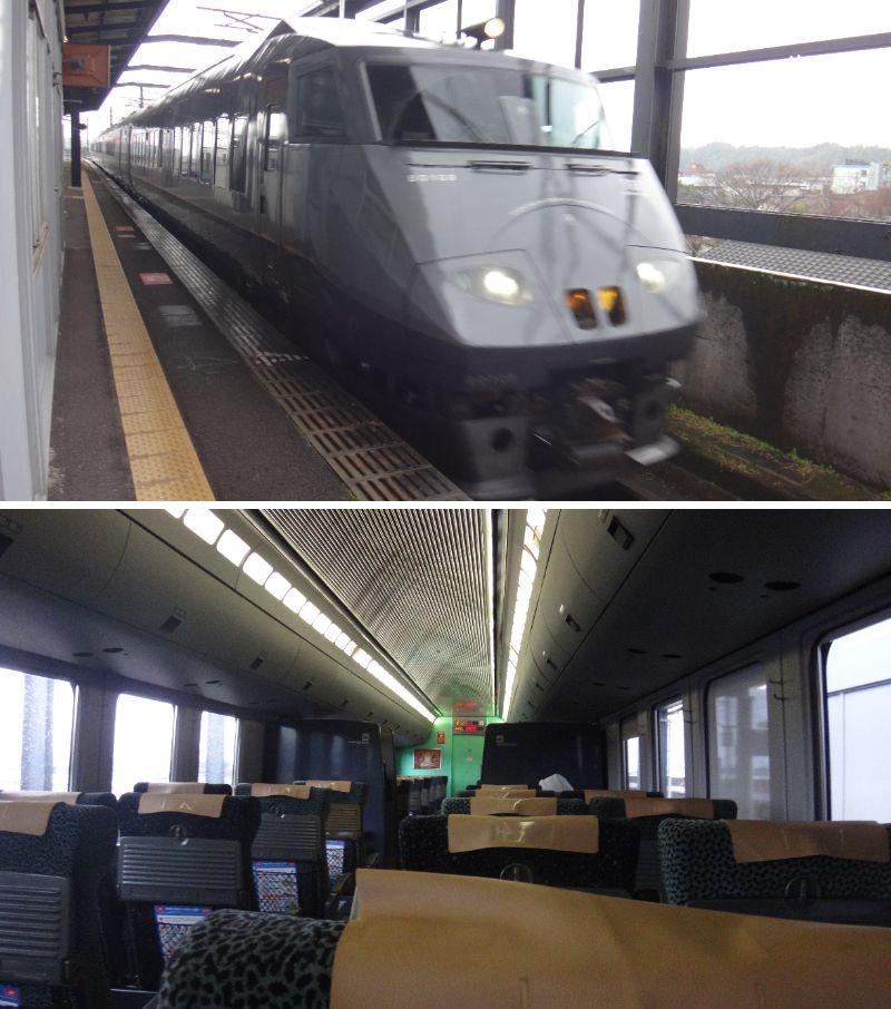 途中で、近くのおじさんが、度々鼻をすするので、気が散り席を移動しました。4~5人の寂しい列車内でした。JALの飛行機は満席だったので、差を感じます。 -
