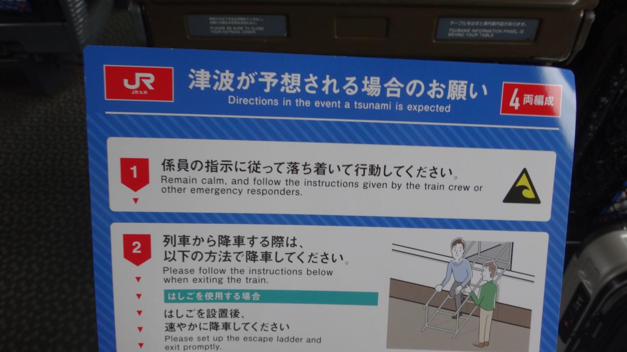 座席に南海トラフ巨大地震の際の避難方法のパンフレットが設置されていました。
