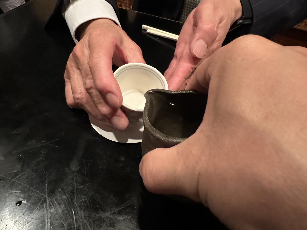 1升瓶より口縁部の片側に注ぎ口がついた器である片口(かたくち)に移して、提供されます。十四代をお猪口に1杯づつ注いだ後、減った片口に、勝手に1升瓶より追加補充したら、お店の方に注意を受けました。やらかしました(反省)。写真は、補充した状況です。その分、たっぷり楽しめました。美味過ぎる!!長生庵 グルメ・レストラン