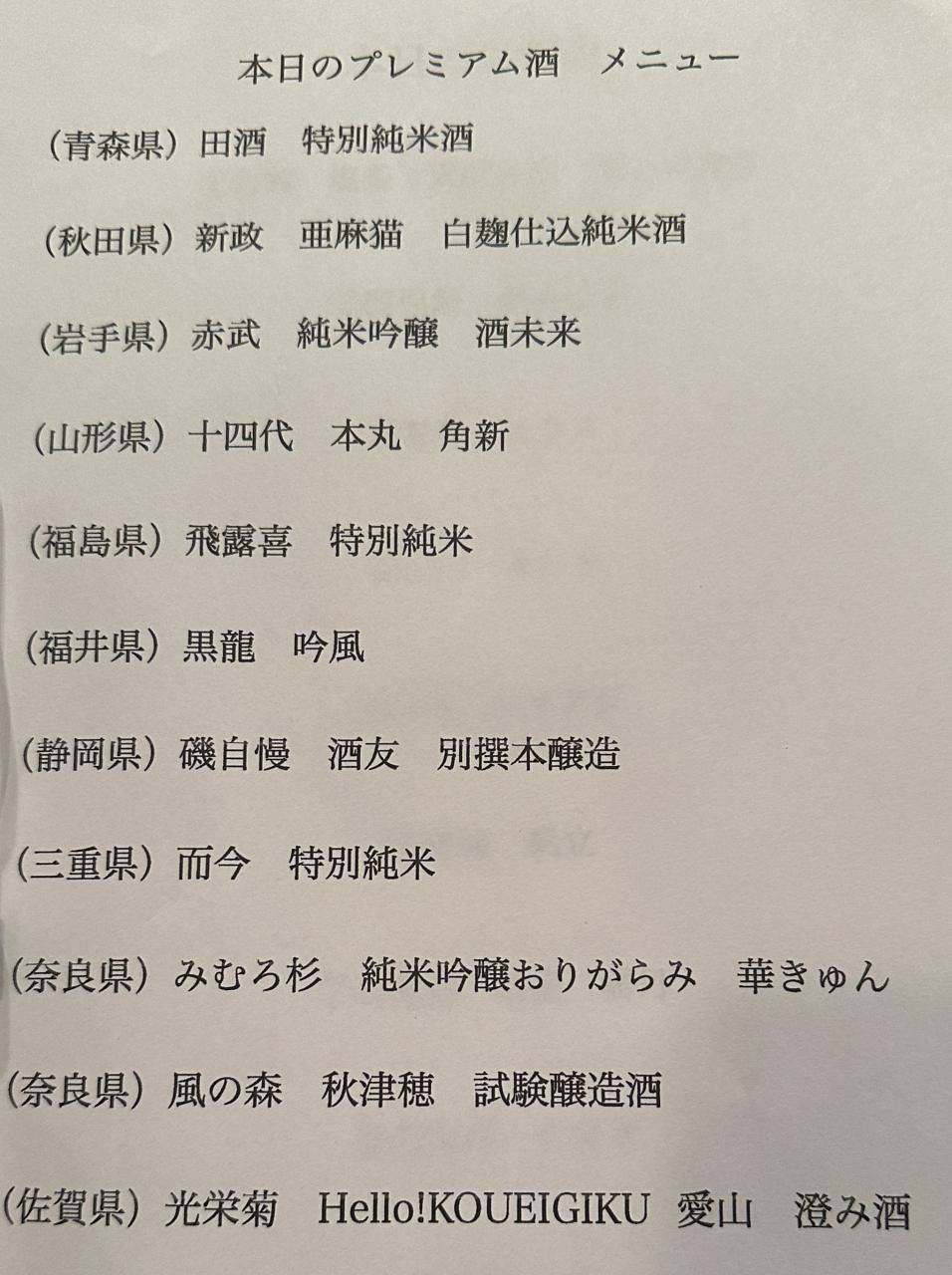 日本酒も十四代や而今(じこん)、その月のおすすめ地酒、超プレミアム酒付きます。そうそうたるプレミア酒メニュー。長生庵 グルメ・レストラン