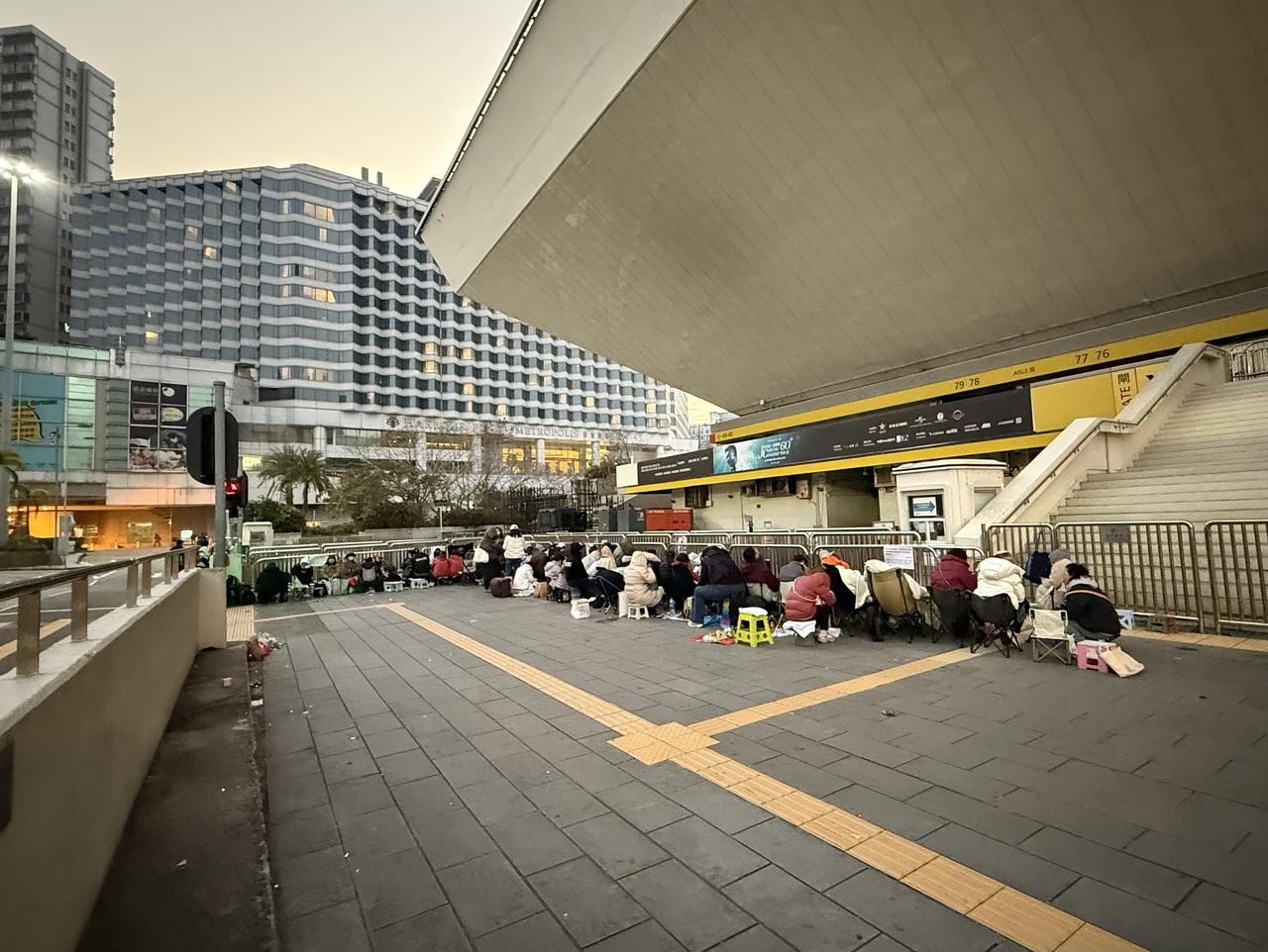 既に夜中中ずっとの場所取りバイトでいっぱい。