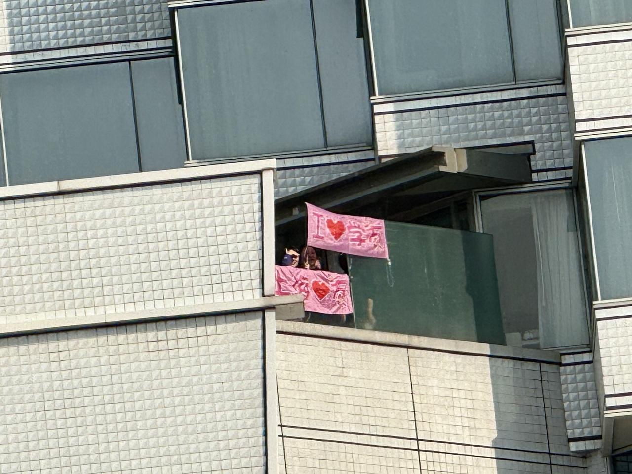 メトロポリスホテルのテラス付き部屋からも応援バナー弾幕!