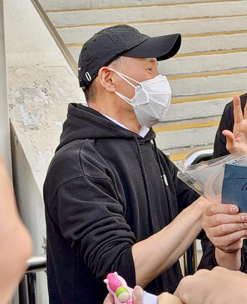 ファンたちにひと挨拶してから、写真撮影と取材を受けて