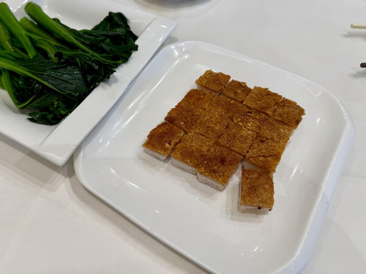 エビ餃子、大根餅みたいのと、野菜のガイラン、