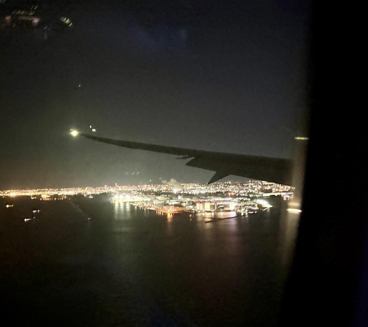 20時すぎ、羽田空港着陸前の夜景