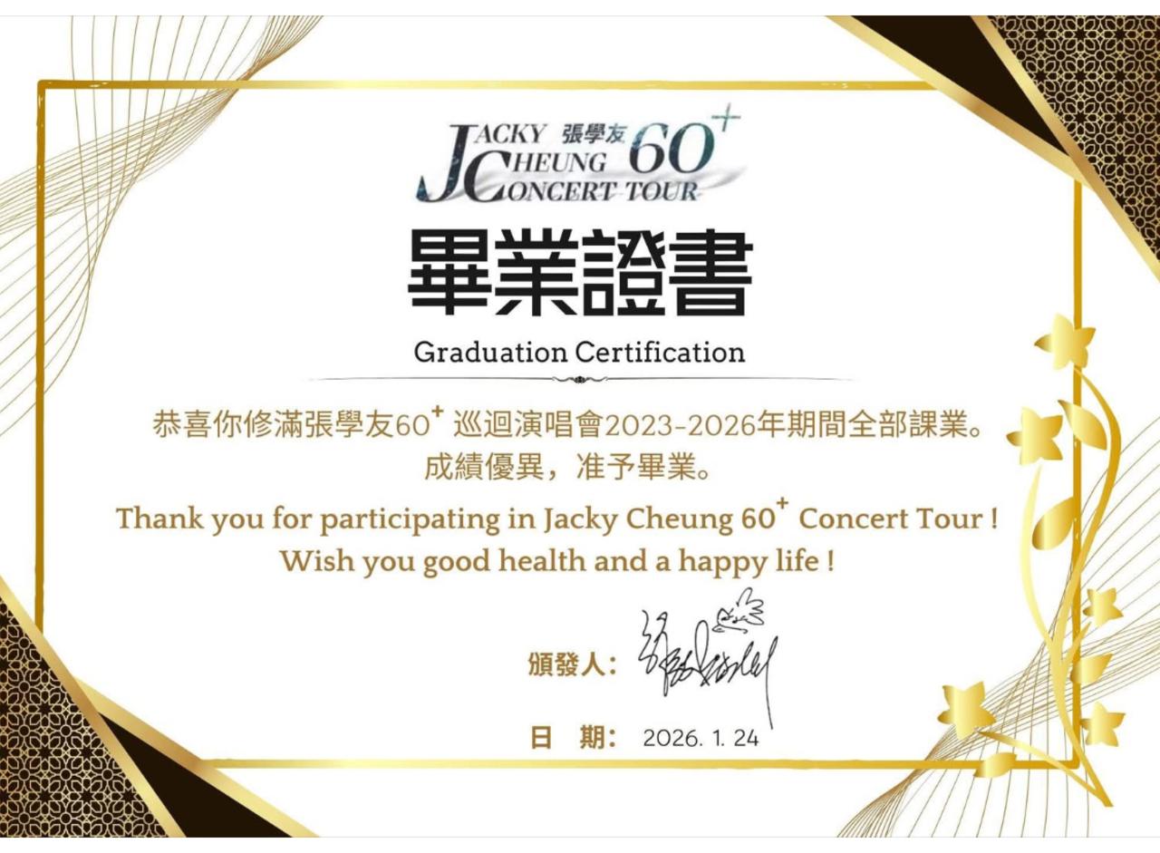 ファンが作った「JC60+コンサートツアー」卒業証書(^^