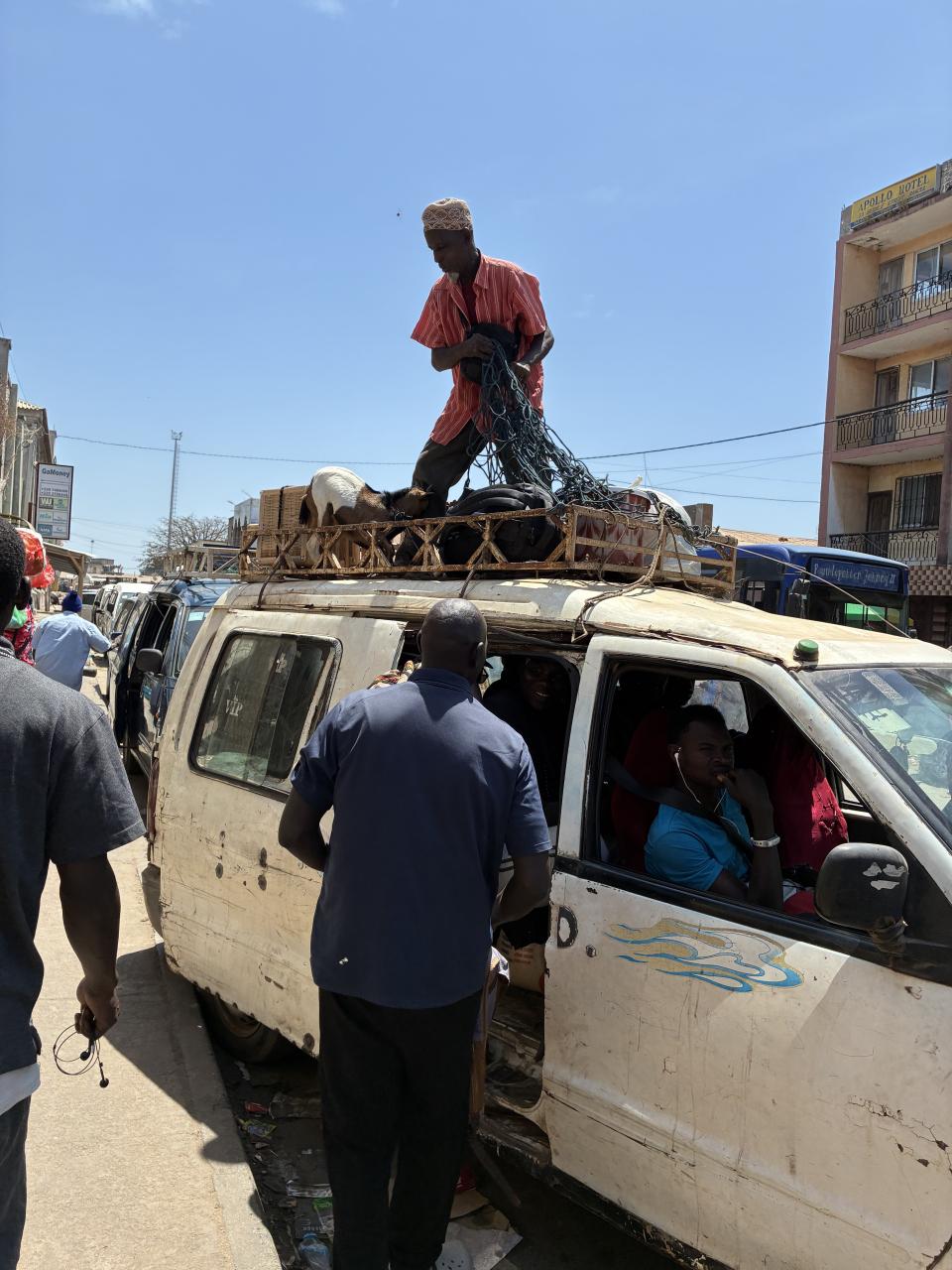 バンジュールで船を降り、乗合バスを探す。最初タクシーしか見当たらなかったけれど、人の流れに乗って歩いていくと、バス登場。セレクンダ近くのコロリという場所まで行くバスに乗る。10ダラシ(220円)だったかな?5くらいかと思っていたので、ぼられたかも。