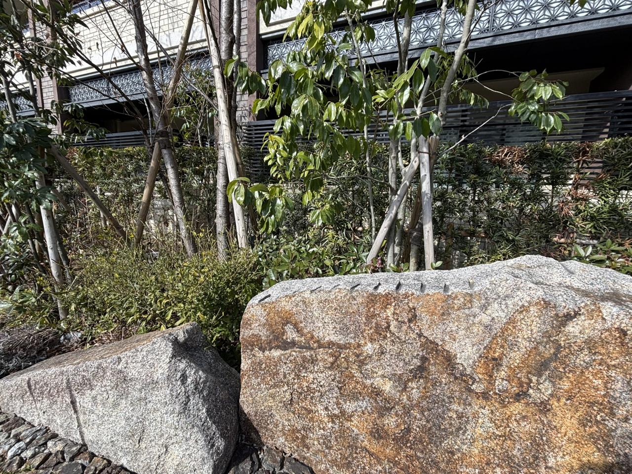 歩いてましたら、歩道の側の、マンションの植え込みに、お城の石垣などに使われた石?