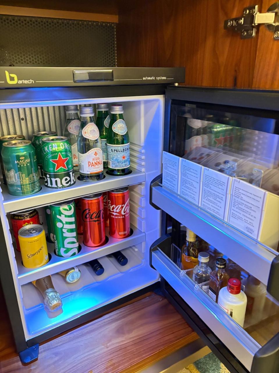 冷蔵庫は動かすと自動チャージされるタイプで何も入れられず。
