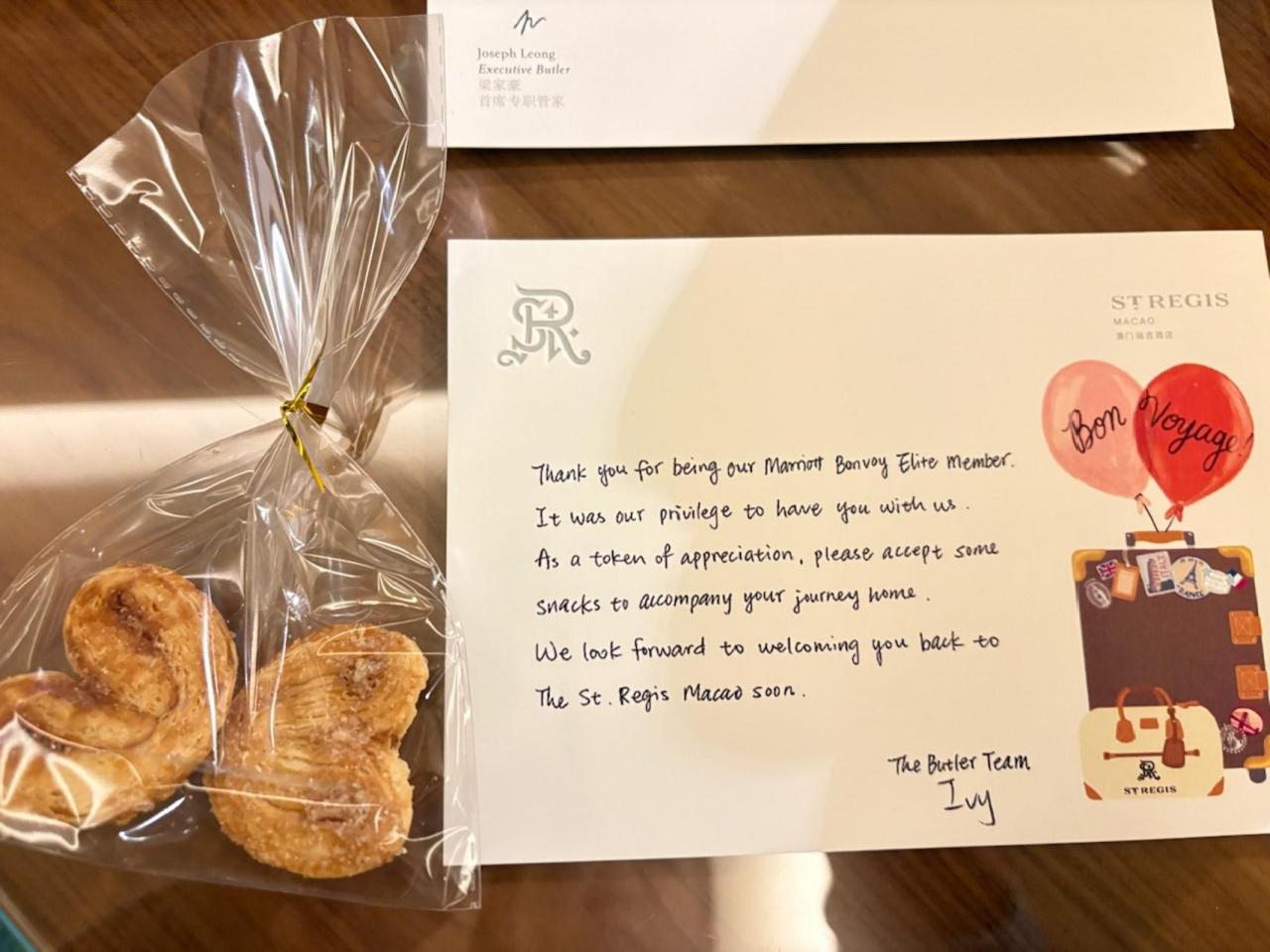 セントレジスはバトラーサービスがあり、皆さんの宿泊記でエッグタルトを持ってきてくれると見てたので、パイのお菓子に変わっててがっかり。