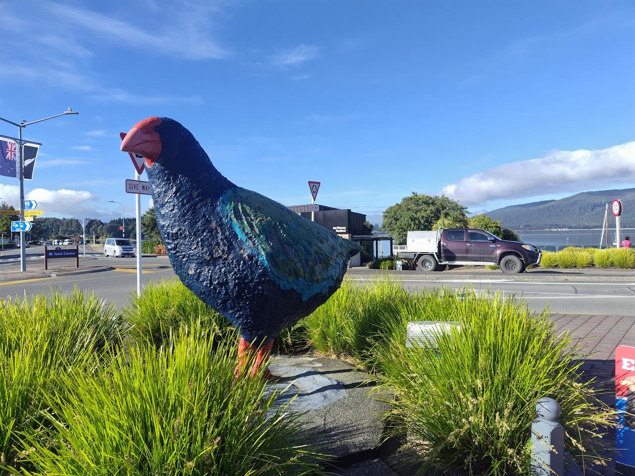 これは飛べない鳥、TAKAHEの像テアナウ湖 滝・河川・湖