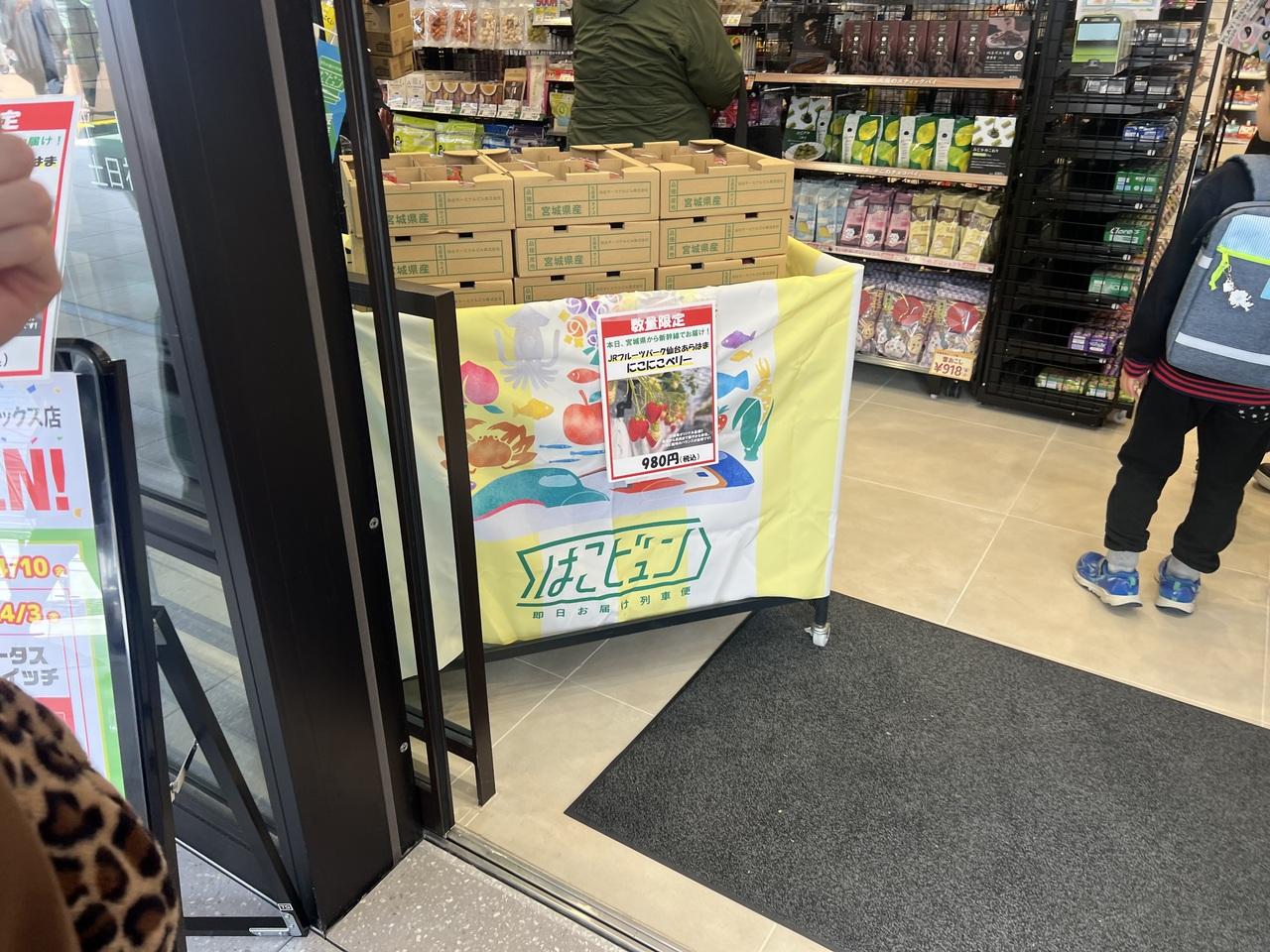 座席を撤去した貨物専用の東北新幹線で運ばれてきた商品。
