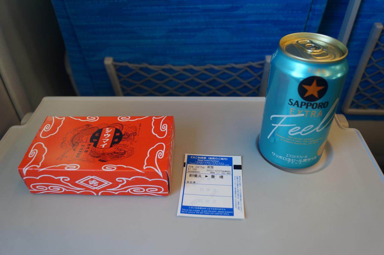 豊橋までは新幹線で崎陽軒のシウマイをつまみに飲み鉄しながら移動です。