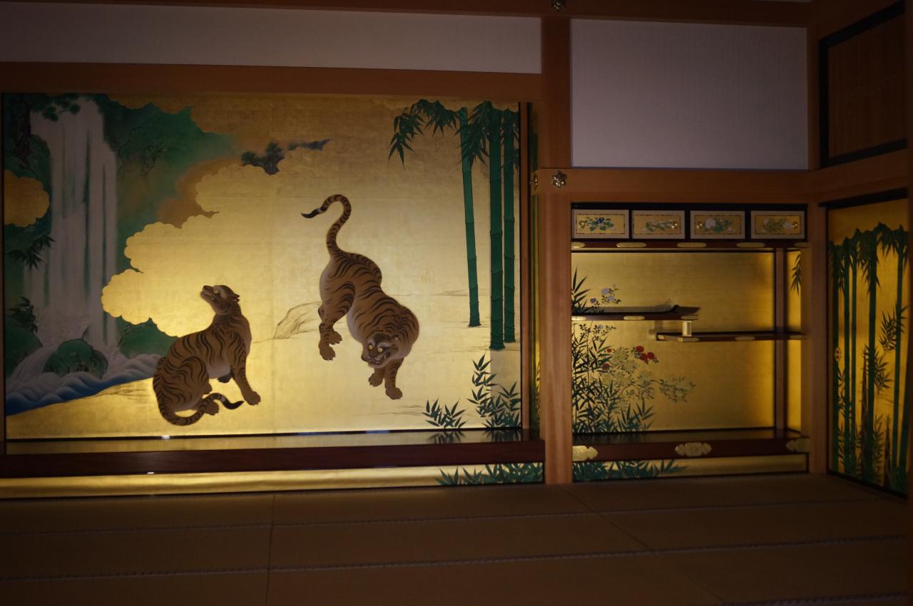 竹林豹虎図が描かれている玄関車寄。